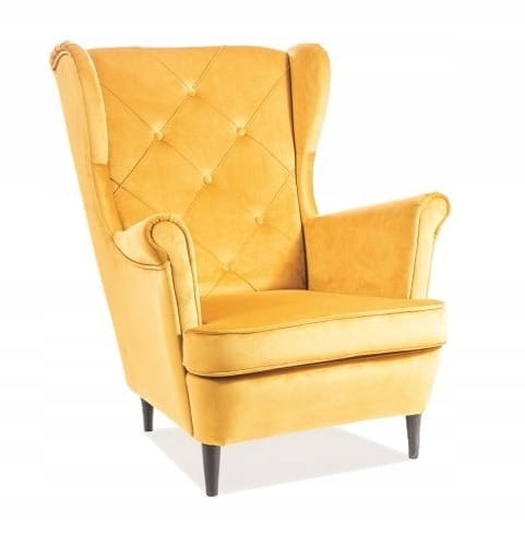 Elegancki i praktyczny fotel LADY VELVET to produkt importera i dystrybutora mebli Signal. Fotel zaprojektowany został z myślą o wnętrzach tradycyjnych, nowocześnie urządzonych, jak i skandynawskich oraz glamour. Tapicerowany fotel o niebanalnym designie i wyjątkowej funkcjonalności, znajdzie swoje zastosowanie we wnętrzach typu pokój dzienny, salon, pracownia, sypialnia oraz gabinet. Fotel doskonale odnajdzie się nie tylko w domu, ale również w aranżacji wnętrz użyteczności publicznej lub we wnętrzach kontraktowych. Fotel wsparty jest na czterech prostych, drewnianych nogach, wybarwionych na kolor wenge, odpornych na wilgoć i uszkodzenia. Funkcjonalny fotel posiada obszerne siedzisko. Wysokie oparcie z zaokrągleniami na górze o zaokrąglone przechodzi w wyprofilowane podłokietniki. W całości mebel tapicerowany jest aksamitną tkaniną w kolorze żółtym. Klasyczny design z lekką nutą nowoczesności, podkreślony został przez gustowne stebnowanie w kształcie rombów, zakończone guzikami w kolorze tapicerki. Fotel występuje w kilku wariantach kolorystycznych.