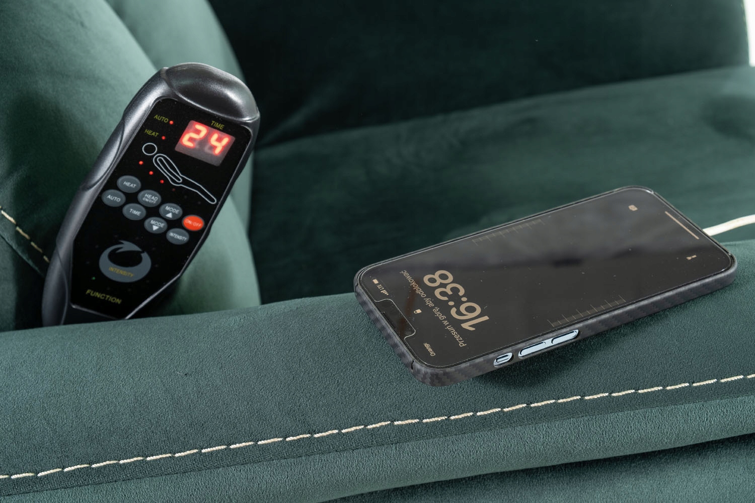 Fotel rozkładany elektrycznie, z funkcją masażu i podgrzewania odcinka lędźwiowego-sterowane pilotem, port USB,