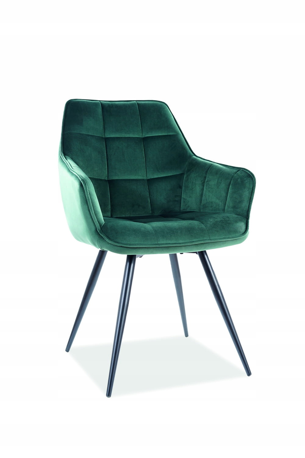 Stabilny, metalowy stelaż w kolorze czarnym idealnie dopasowuje się do aksamitnej tapicerki. Krzesło jest bardzo wygodne dzięki szerokiemu, miękkiemu siedzisku oraz podłokietnikami. Zapewnia komfort nawet podczas długiego użytkowania.