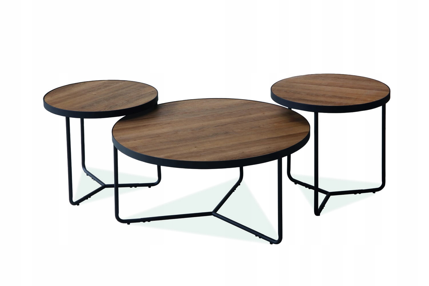 Zestaw trzech okrągłych ław w kolorze orzecha