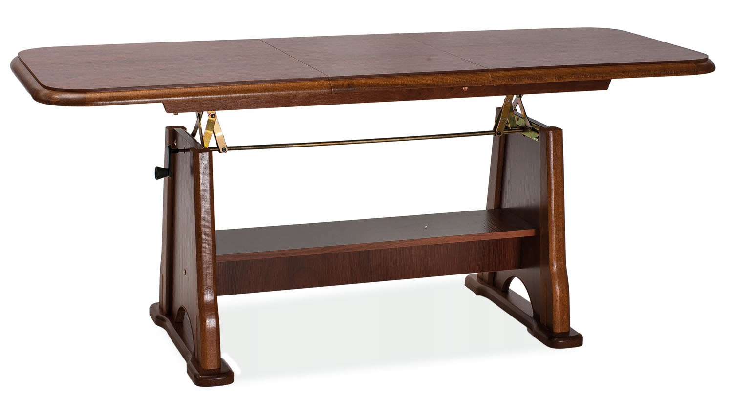 Ławostół to praktyczny mebel który znajdzie zastosowanie w każdym wnętrzu. Drewniana elegancka ława ze zdobionymi nogami zajmuje małą przestrzeń, po rozłożeniu zmienia się w duży stół przy którym swobodnie zjemy posiłek, urządzimy przyjecie. Długość ławostołu po rozłożeniu to aż 170 cm co daje nam pewność, że przy stole zmieszczą się wszyscy goście, domownicy. Rozkładana ława to doskonałe rozwiązanie do każdej przestrzeni.