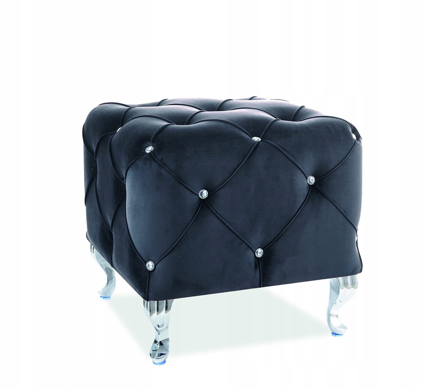Puf HESTIA VELVET to elegancki mebel obszyty aksamitem. Projekt w stylu glamour z ozdobnymi pikowaniami i kryształkami (guzikami) nadaje szyku i sprawia, że pufa prezentuje się niezwykle ekskluzywnie i ciekawie. Puf sprawdzi się jako dodatkowe siedzisko lub podnóżek przy fotelu. Miękki mebel tapicerowany jest eleganckim i miłym w dotyku aksamitem. Doskonała propozycja do nowoczesnego salonu, sypialni, pokoju, ale też poczekalni lub butiku.