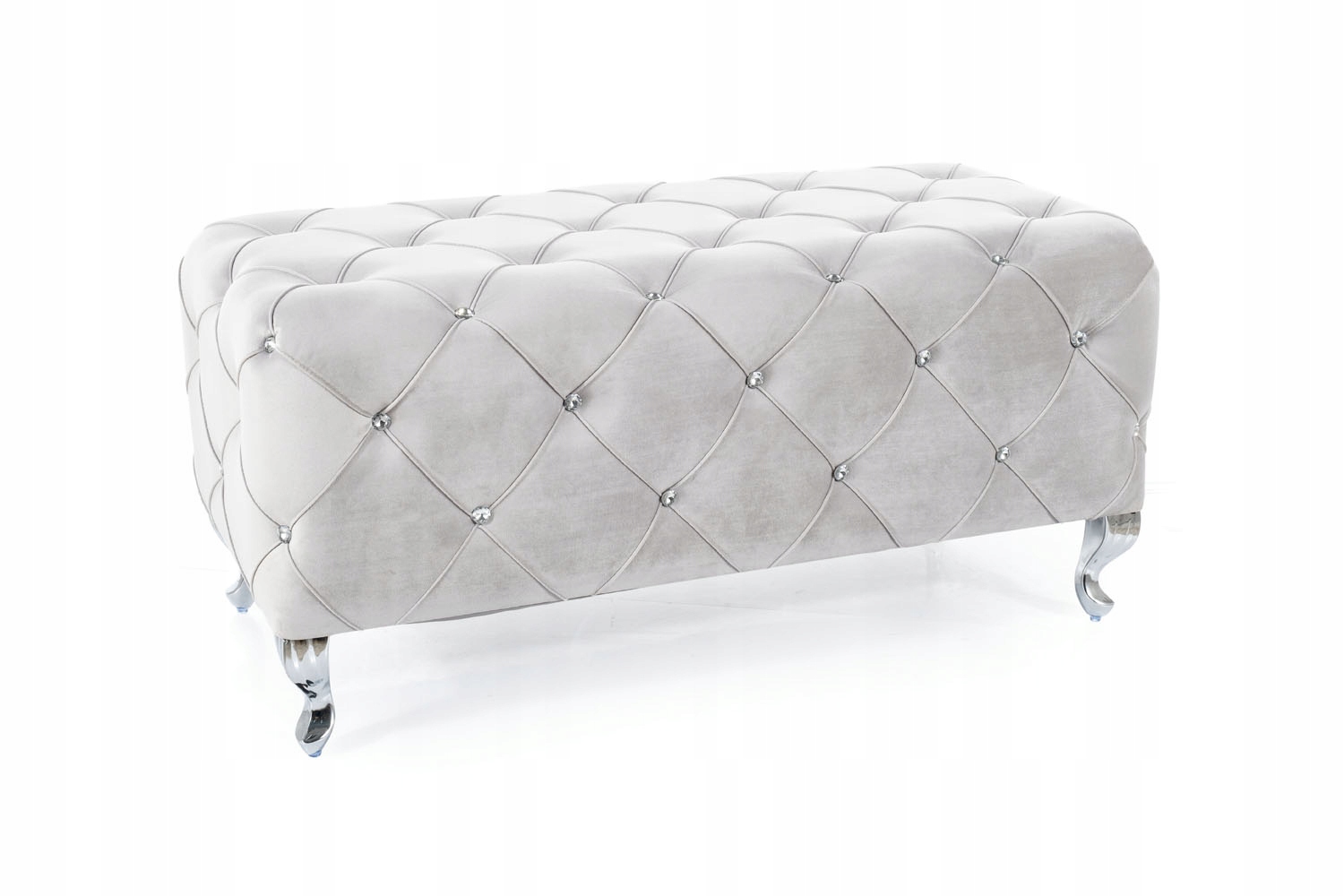 Ławka Hestia to elegancki mebel tapicerowany aksamitem. Wzór mebla reprezentuje styl glamour, prezentuje się niezwykle ekskluzywnie i elegancko. Ławka doskonale sprawdzi się jako dodatkowe siedzisko w salonie, sypialni a nawet poczekalni lub eleganckim butiku. Mebel pokryty jest miłym w dotyku aksamitem a dodatkowego uroku dodają mu białe kryształy zamocowane w miejscach pikowania oraz metalowe stylizowane nóżki. Ławka Hestia występuje w wielu wersjach kolorystycznych
