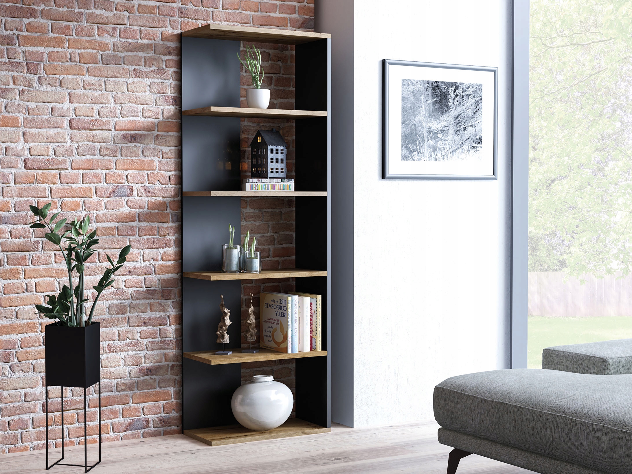 REGAŁ CORNER DĄB WOTAN+CZARNY 170X60