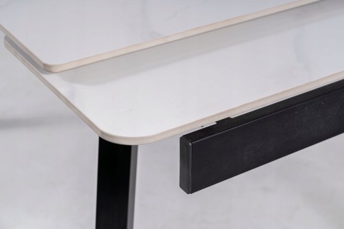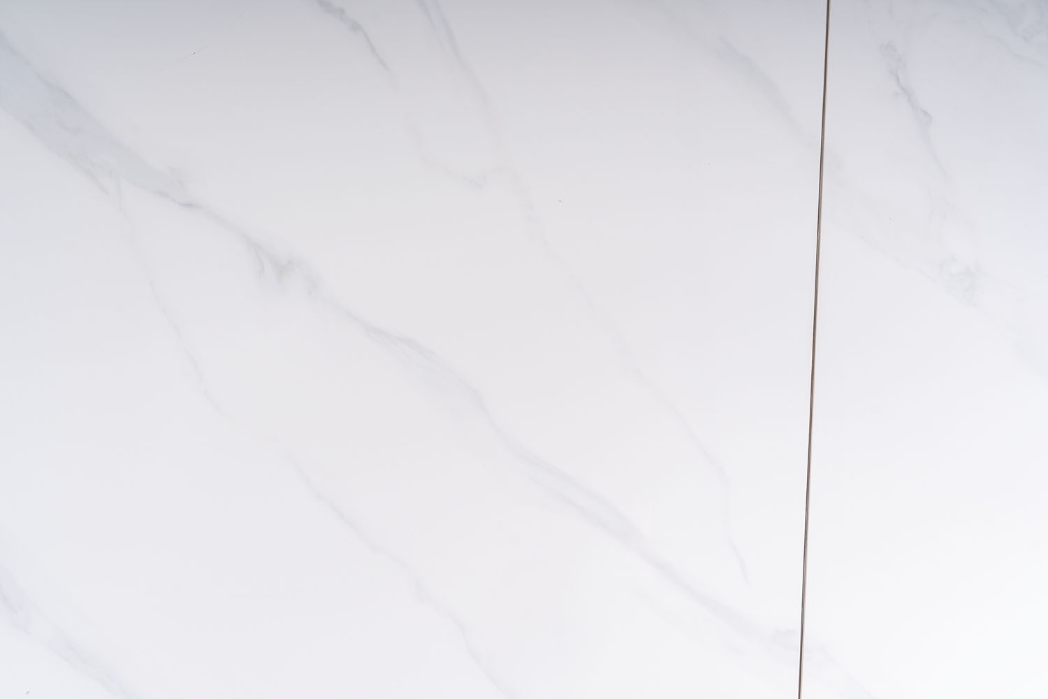 Blat wykonany został z CERAMIKI w kolorze BIAŁYM w połączeniu ze stabilnym, METALOWYM stelażem tworzy piękny i zjawiskowy mebel, który stanie się centralnym punktem wnętrza. Dodatkowo kolor STOŁU zapewni łatwy dobór pasujących do niego dodatków w stylu nowoczesnym lub glamour.