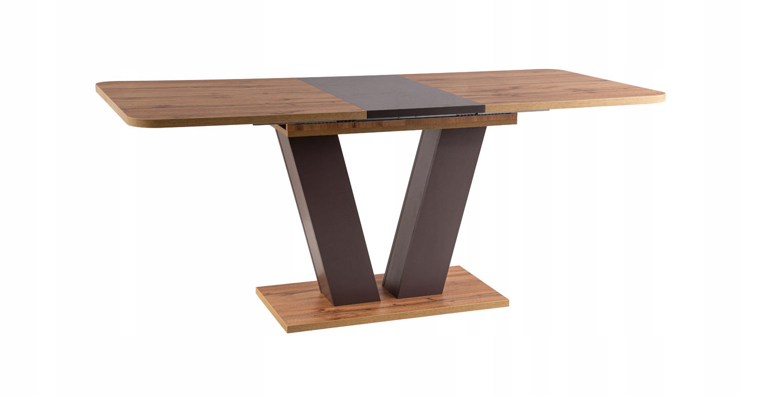 Rozkładany Stół PLATON od firmy Signal Meble to uniwersalna propozycja do każdej jadalni. Dzięki swoim kompaktowym wymiarom stół sprawdzi się zarówno w mniejszej, jak i większej przestrzeni. Jest połączeniem klasycznej formy eleganckiego stołu i nowoczesnego designu, zachowując przy tym dużą dozę praktyczności. Blat wraz ze stelażem jest wykonany z wytrzymałej laminowanej płyty w kolorze dąb wotan. Noga stołu została urozmaicona brązowym pasem, który dodaje charakteru całej bryle. Stół idealnie wtopi się we wnętrza w stylu skandynawskim, nowoczesnym lub loftowym.