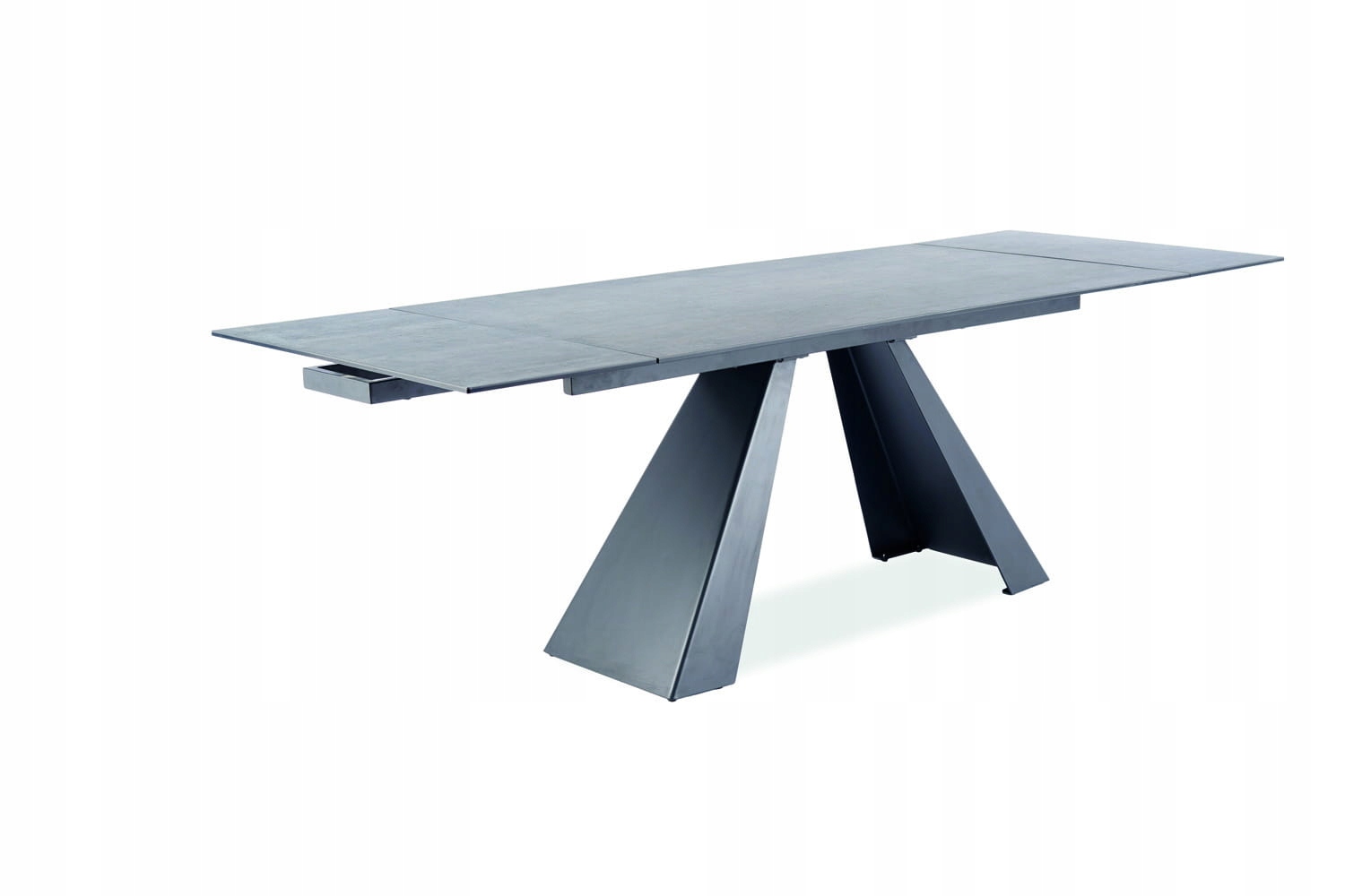 Rozkładany blat wykonany został ze szkła hartowanego połączonego z piękną włoską ceramiką świetnie imitującą wygląd prawdziwego marmuru w szarym odcieniu. W połączeniu ze stabilnym, metalowym stelażem tworzy piękny i zjawiskowy mebel, który stanie się centralnym punktem wnętrza. Dodatkowo kolor stołu zapewni łatwy dobór pasujących do niego krzeseł w stylu nowoczesnym lub loftowym.