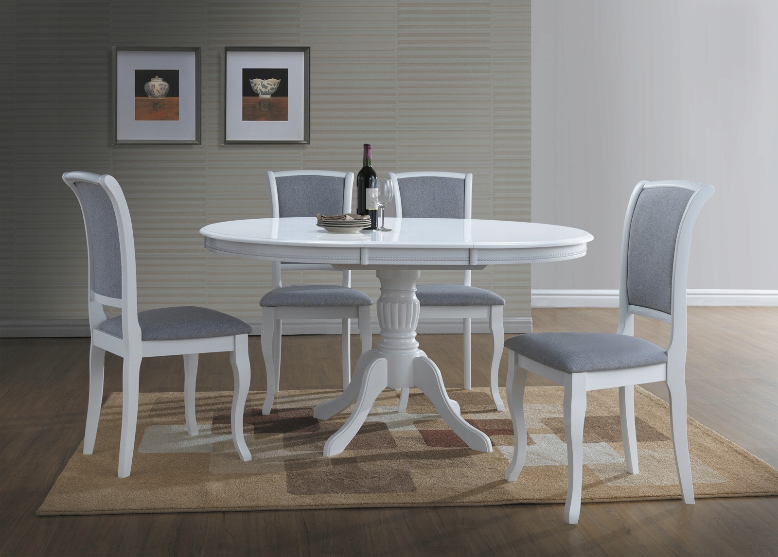 stół w klasycznym stylu, blat MDF, kolor:biały / stelaż drewno, kolor: bialy